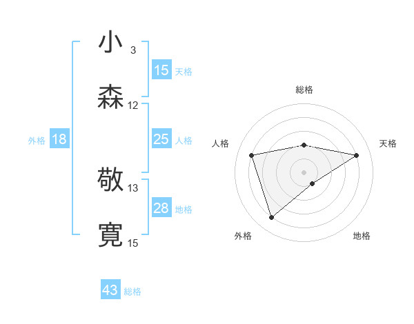 小森 敬寛さんを姓名の画数から五運を鑑定