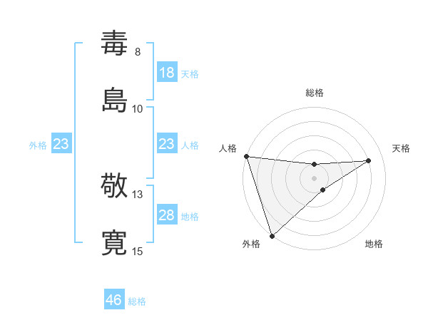 毒島 敬寛さんを姓名の画数から五運を鑑定