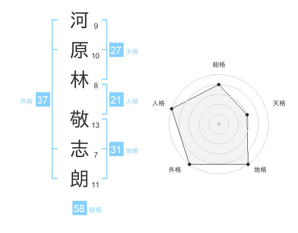 河原林 敬志朗さんの総格は58画の4点!