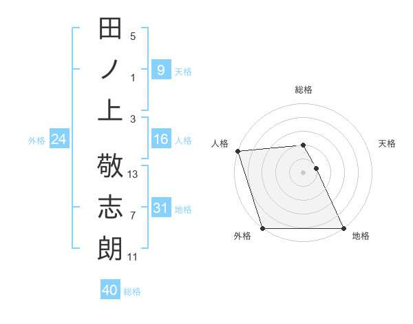 田ノ上 敬志朗さんを姓名の画数から五運を鑑定