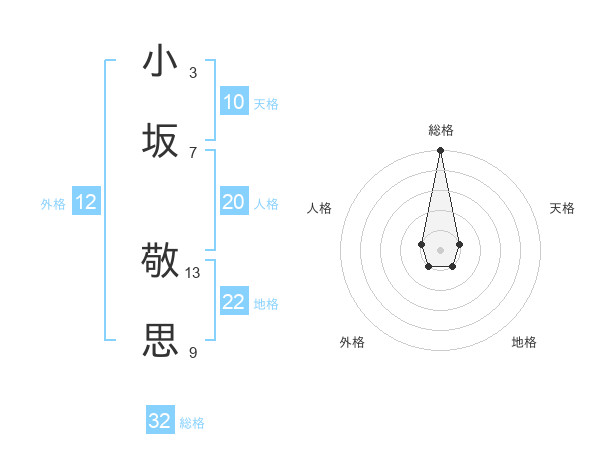 小坂 敬思さんの総格は32画の5点!