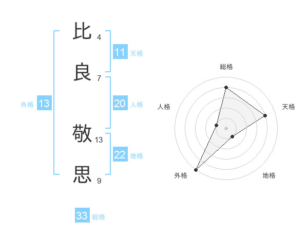 比良 敬思さんの総格は33画の4点!