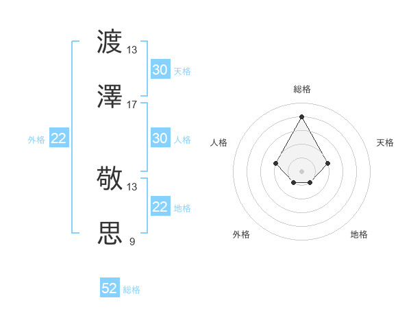 渡澤 敬思さんを姓名の画数から五運を鑑定