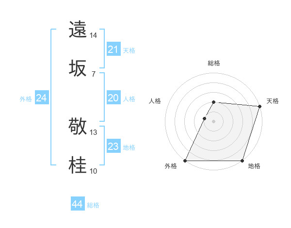 遠坂 敬桂さんを姓名の画数から五運を鑑定