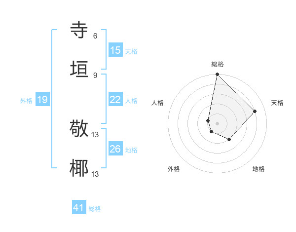 寺垣 敬椰さんを姓名の画数から五運を鑑定