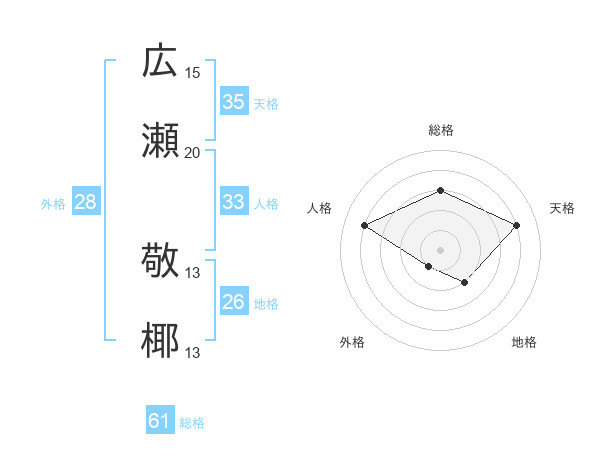 広瀬 敬椰さんを姓名の画数から五運を鑑定