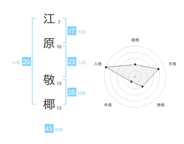 江原 敬椰さんの天格は17画の4点!