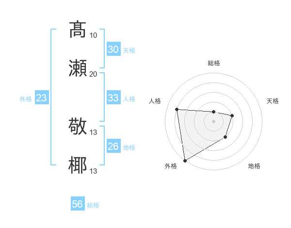 髙瀬 敬椰さんを姓名の画数から五運を鑑定