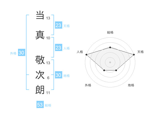 当真 敬次朗さんの天格は23画の5点!