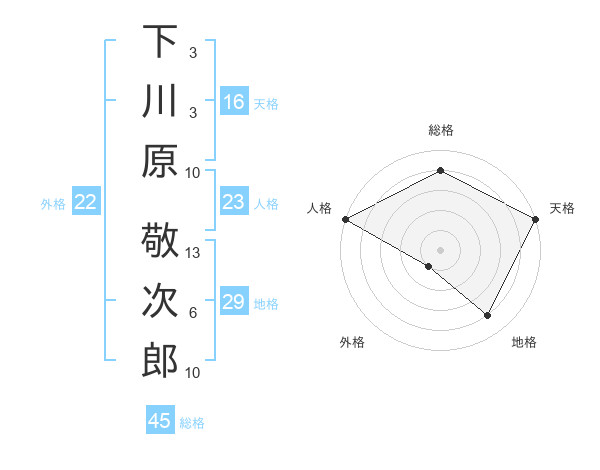 下川原 敬次郎さんを姓名の画数から五運を鑑定