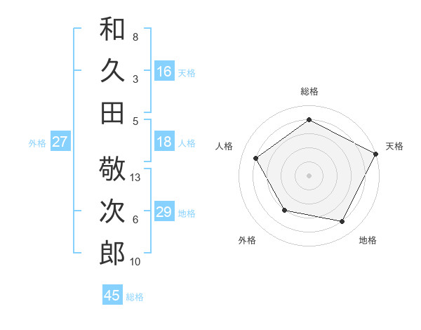 和久田 敬次郎さんを姓名の画数から五運を鑑定