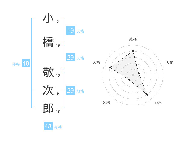 小橋 敬次郎さんを姓名の画数から五運を鑑定