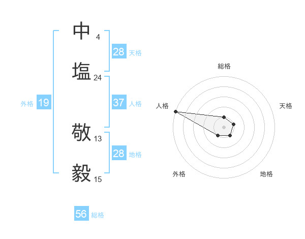中塩 敬毅さんを姓名の画数から五運を鑑定