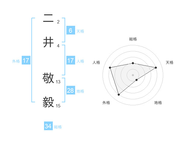二井 敬毅さんの人格は17画の4点!