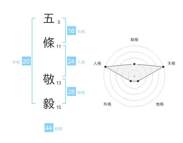 五條 敬毅さんの天格は16画の5点!