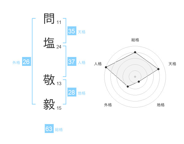 問塩 敬毅さんの総格は63画の4点!