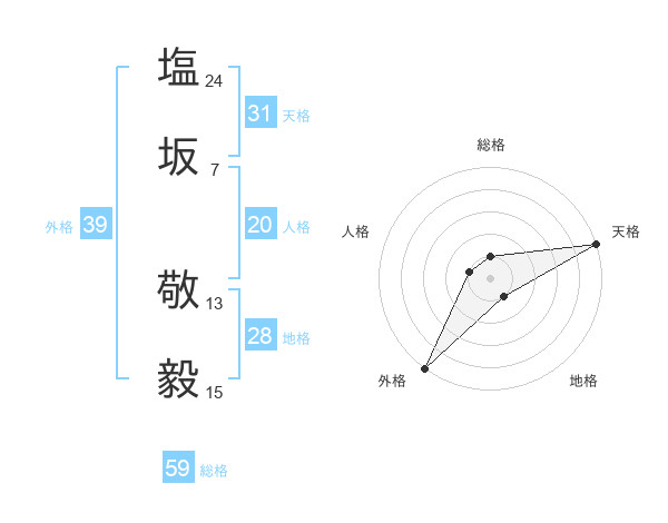 塩坂 敬毅さんの総格は59画の1点!