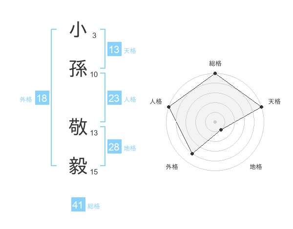 小孫 敬毅さんを姓名の画数から五運を鑑定
