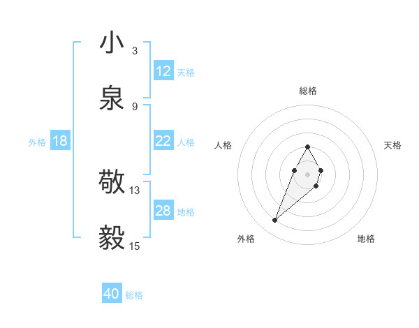 小泉 敬毅さんの天格は12画の1点!