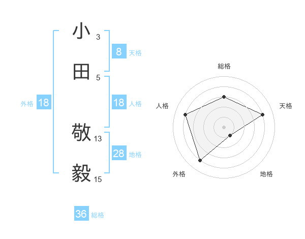 小田 敬毅さんの天格は8画の4点!