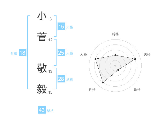 小菅 敬毅さんの天格は15画の4点!