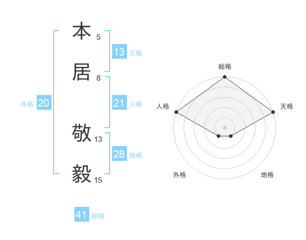 本居 敬毅さんの総格は41画の5点!