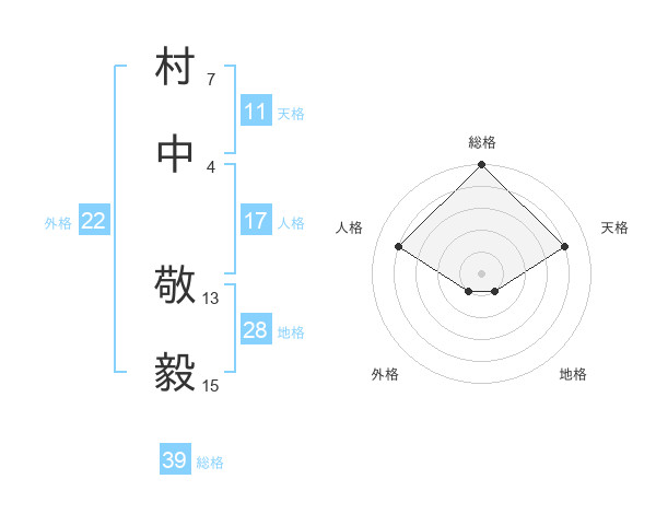 村中 敬毅さんを姓名の画数から五運を鑑定