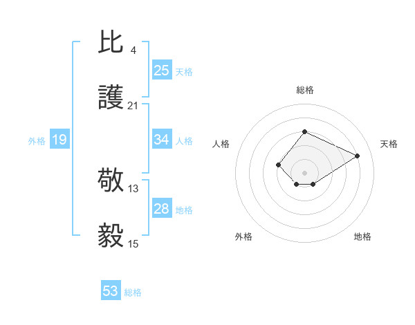 比護 敬毅さんの総格は53画の3点!