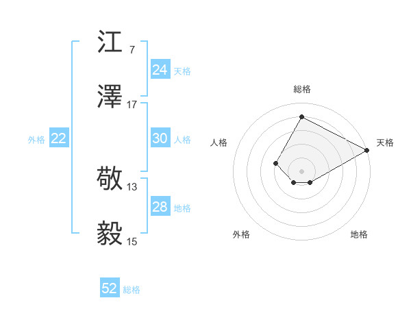 江澤 敬毅さんの総格は52画の4点!