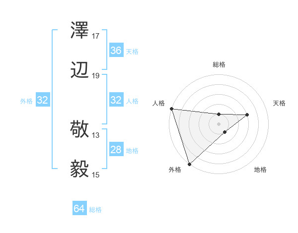 澤辺 敬毅さんの総格は64画の1点!