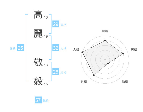 高麗 敬毅さんの総格は57画の4点!