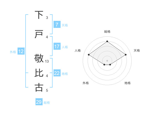 下戸 敬比古さんを姓名の画数から五運を鑑定