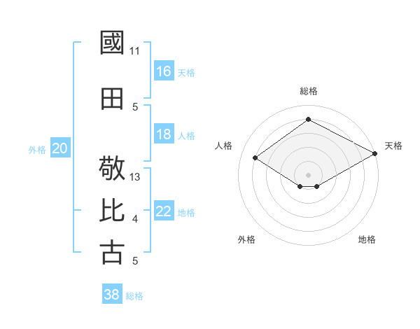 國田 敬比古さんの総格は38画の4点!