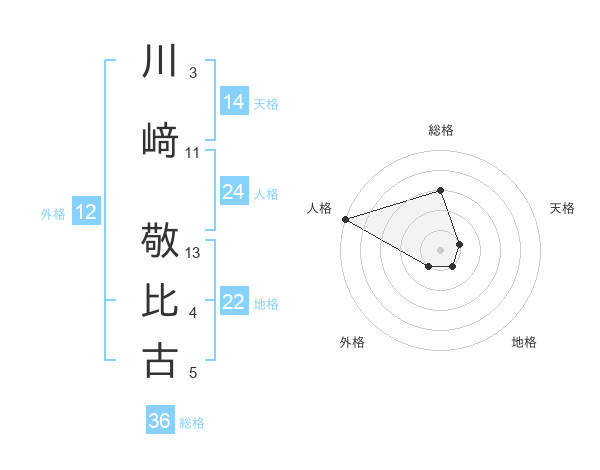 川﨑 敬比古さんを姓名の画数から五運を鑑定