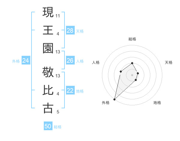 現王園 敬比古さんの総格は50画の2点