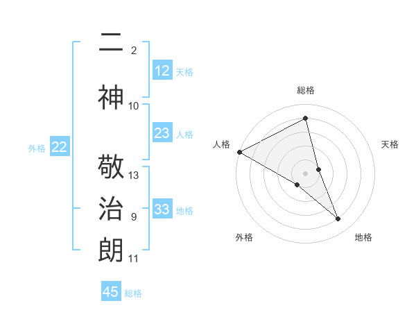 二神 敬治朗さんを姓名の画数から五運を鑑定