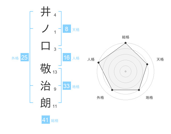 井ノ口 敬治朗さんを姓名の画数から五運を鑑定