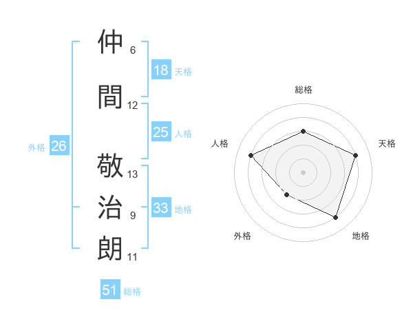 仲間 敬治朗さんを姓名の画数から五運を鑑定