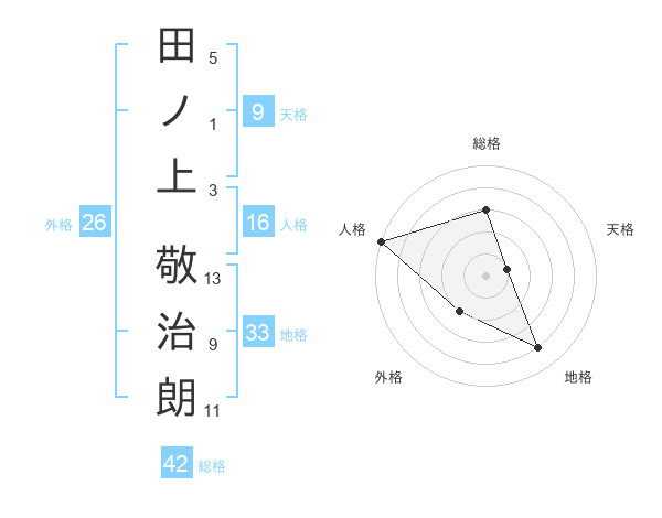 田ノ上 敬治朗さんを姓名の画数から五運を鑑定