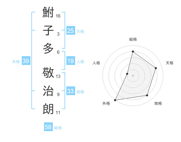 鮒子多 敬治朗さんを姓名の画数から五運を鑑定