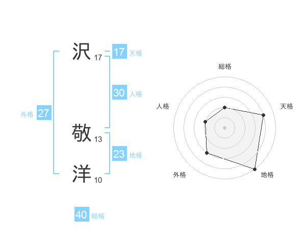 沢 敬洋さんの天格は17画の4点!