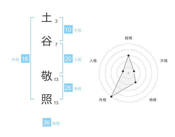 土谷 敬照さんを姓名の画数から五運を鑑定