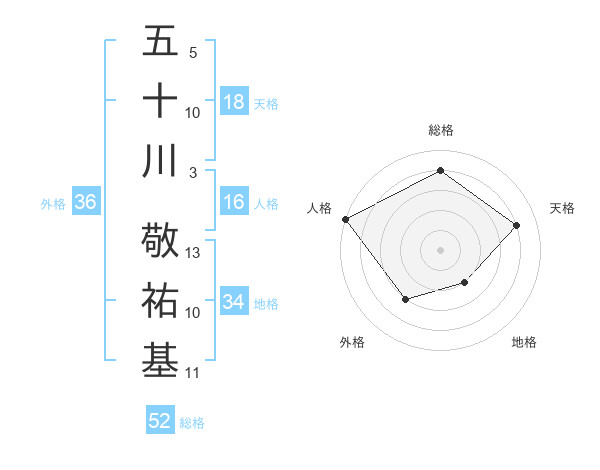 五十川 敬祐基さんを姓名の画数から五運を鑑定