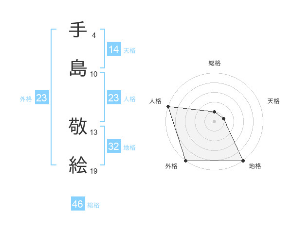 手島 敬絵さんの外格は23画の5点!