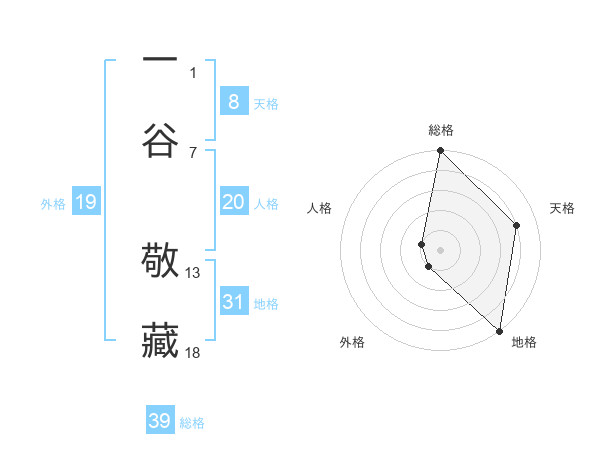 一谷 敬藏さんを姓名の画数から五運を鑑定