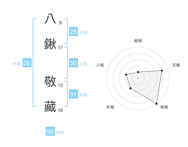 八鍬 敬藏さんを姓名の画数から五運を鑑定