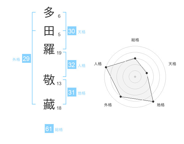 多田羅 敬藏さんを姓名の画数から五運を鑑定