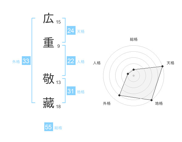 広重 敬藏さんを姓名の画数から五運を鑑定