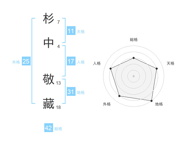 杉中 敬藏さんの地格は31画の5点!