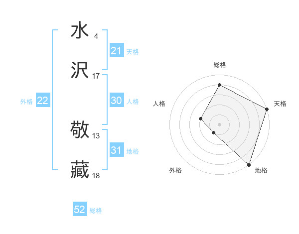 水沢 敬藏さんの総格は52画の4点!